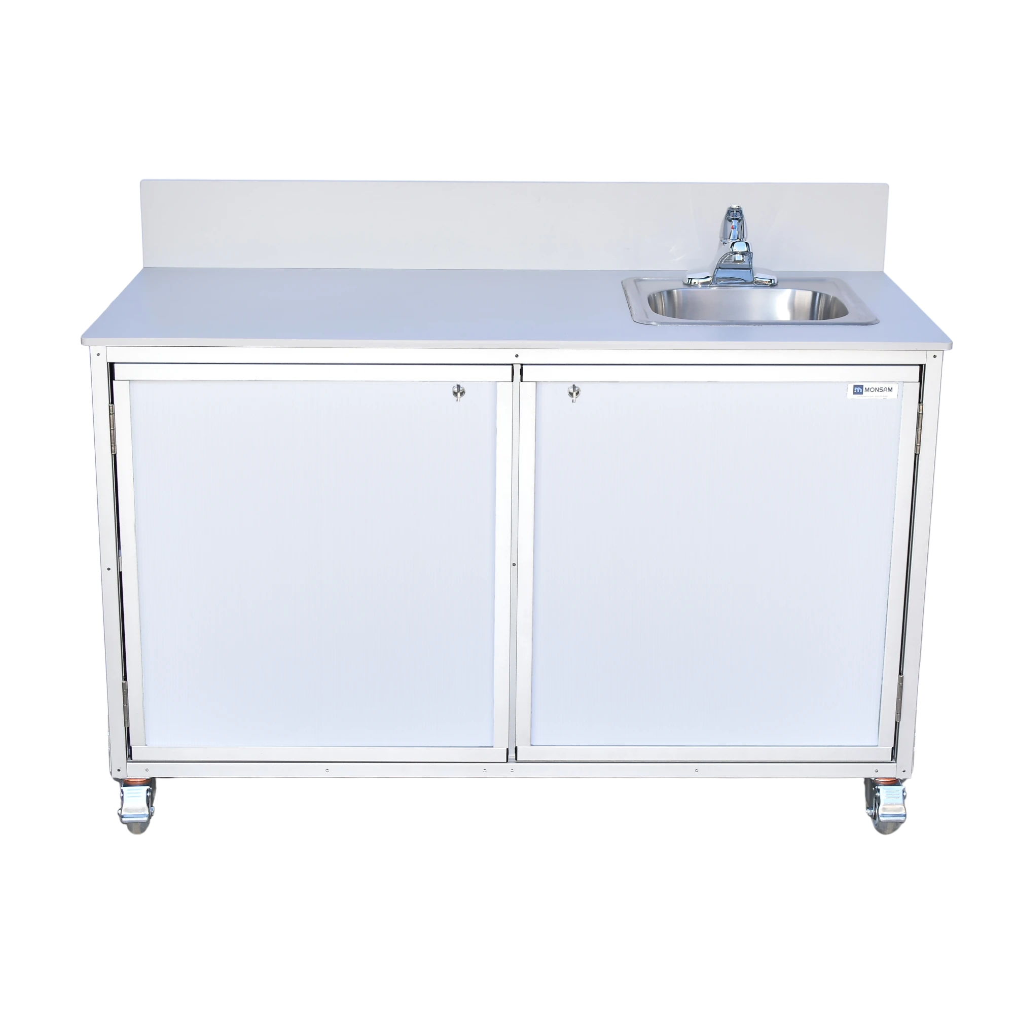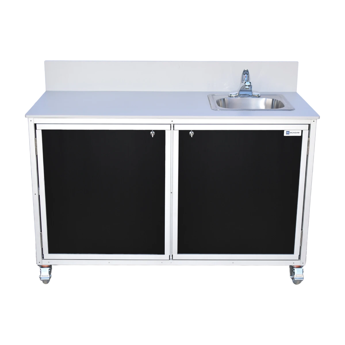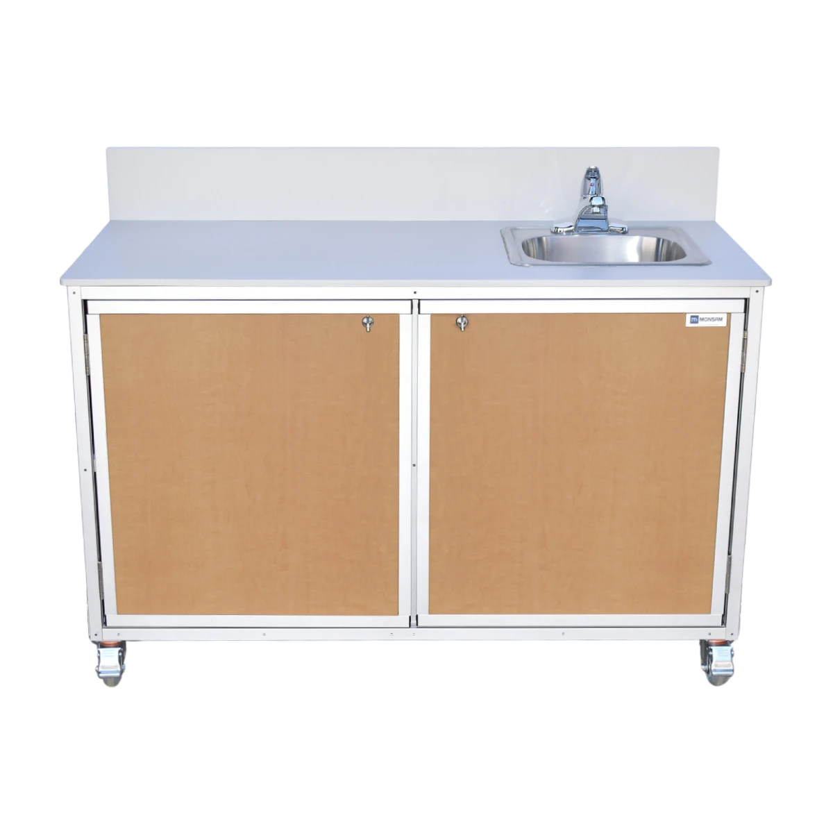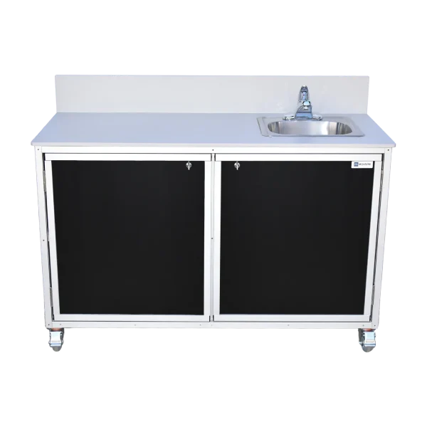 The Monsam PSE-2046 mobile work table comes with a large countertop for ample demonstration space, a stainless steel sink that provides hot and cold running water without plumbing, and a spacious cabinet for storage. This mobile, self-contained unit makes science experiments, cooking demonstrations, art projects, and other hands-on activities a breeze. It can be customized to meet your specifications. No assembly or plumbing installation required.