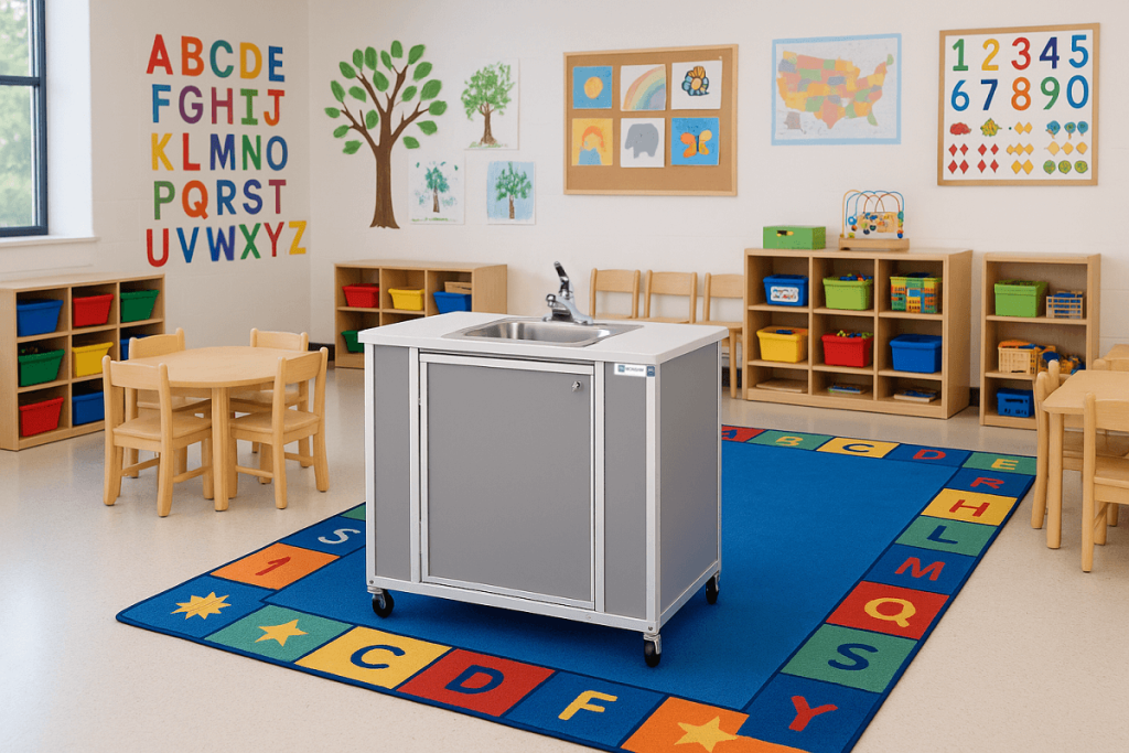 Just like our NS-006 model, the NS-007 is NSF certified and perfect for preschools, childcare programs, elementary schools and other high traffic areas where you require a compact sink without fixed plumbing. Standing 30” high, this portable sink for kids is easy to clean and comes in a range of colors to match your setting.