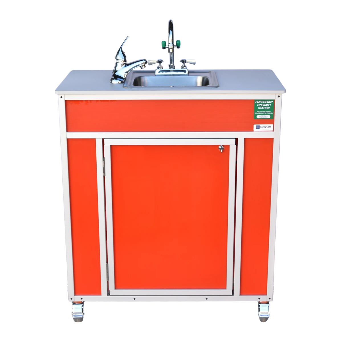 Set your safety standards high, while remaining flexible with the Monsam PSE-2001E Portable Eye and Face Washing Station. Ideal for use in healthcare settings, on construction sites, and in manufacturing facilities. No assembly or permanent plumbing required.